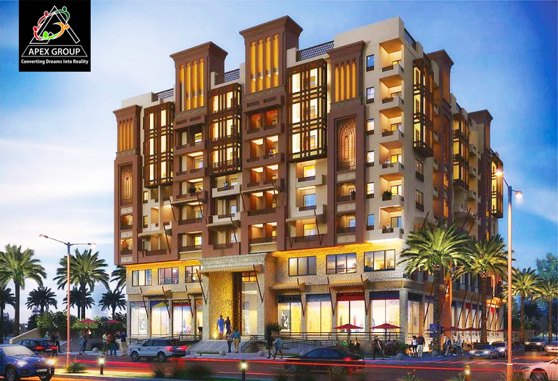 For information on prices on flats, and shops or to inquire about booking details, contact Apex Group.