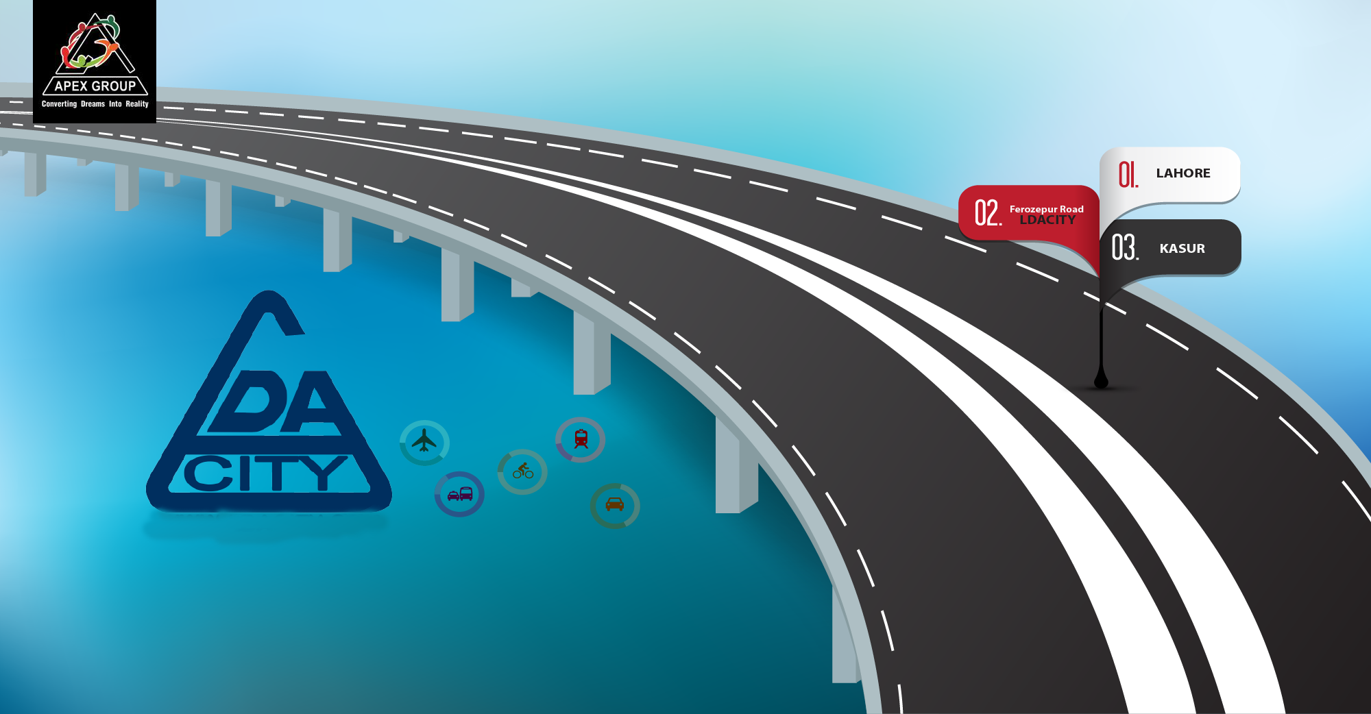 There are 3 sectors in LDA City and the development activities in each phase have actively begun. A 180 Feet wide road leading from Ferozpur Road to the main gate of LDA City has been completed at a total cost of Rs.1.13 billion. Another 150 feet road leading to the society from Defence Road is currently under construction. The construction of lush gardens & side plantation has also begun so as to enhance the outlook & beauty of the community. After the completion of Kacha Road and Haloki Road, the access to LDA City has become further facilitated.