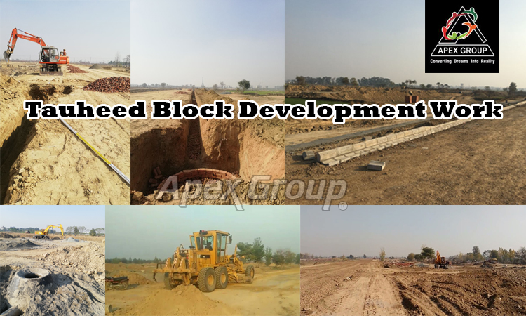 The development of Tauheed Block has picked up pace and progressing at an impressive speed. The Bahria Town Management has vowed to bring the development on ground in the first quarter of 2018 and the current update manifests expansion of Infrastructure. The sewerage, Water Lines and electrification work has been completed while the build out of road network is underway. Tauheed Block has a unique marked layout as it is slightly segregated from other blocks lending it an exclusive appeal.