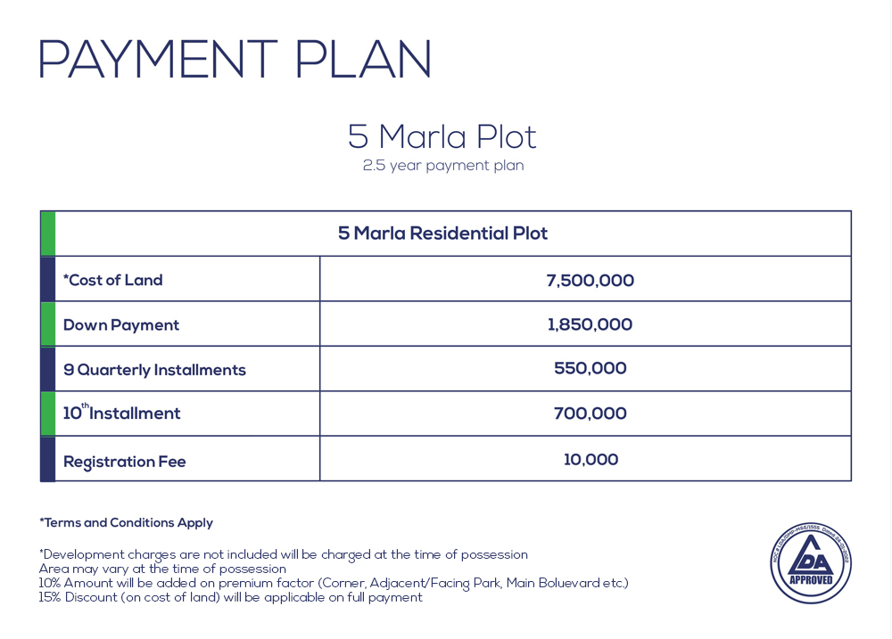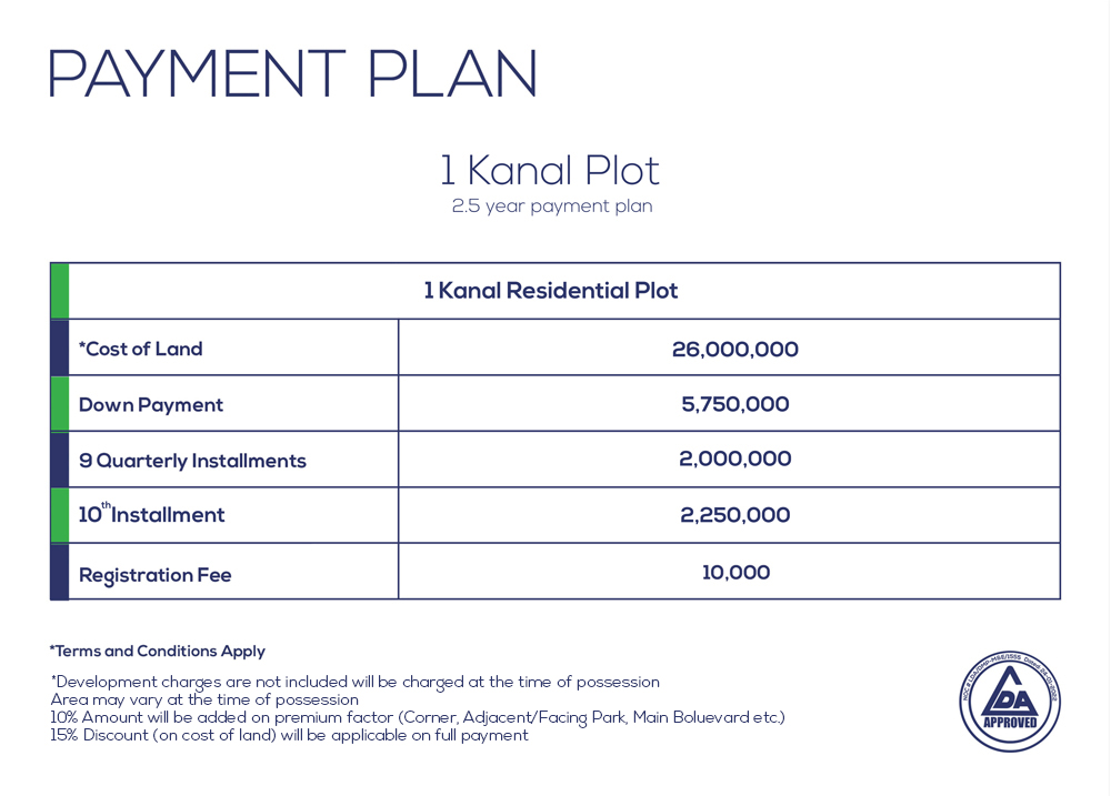 The residential district comprises residential plots, apartments, and villas. It is served with a central park with pathways and cycling tracks surrounded by lush green lawns, children’s play areas, and mom’s gossip areas. The residential district clubhouse is equipped with fully serviced dining, lodging, boarding rooms, and fitness and wellness centers, sports facilities, Amphitheatre, meet and great spaces read and gossips area, supermarket, necessity shops, and an elegant mosque.  Residential districts subdivided into the following categories.