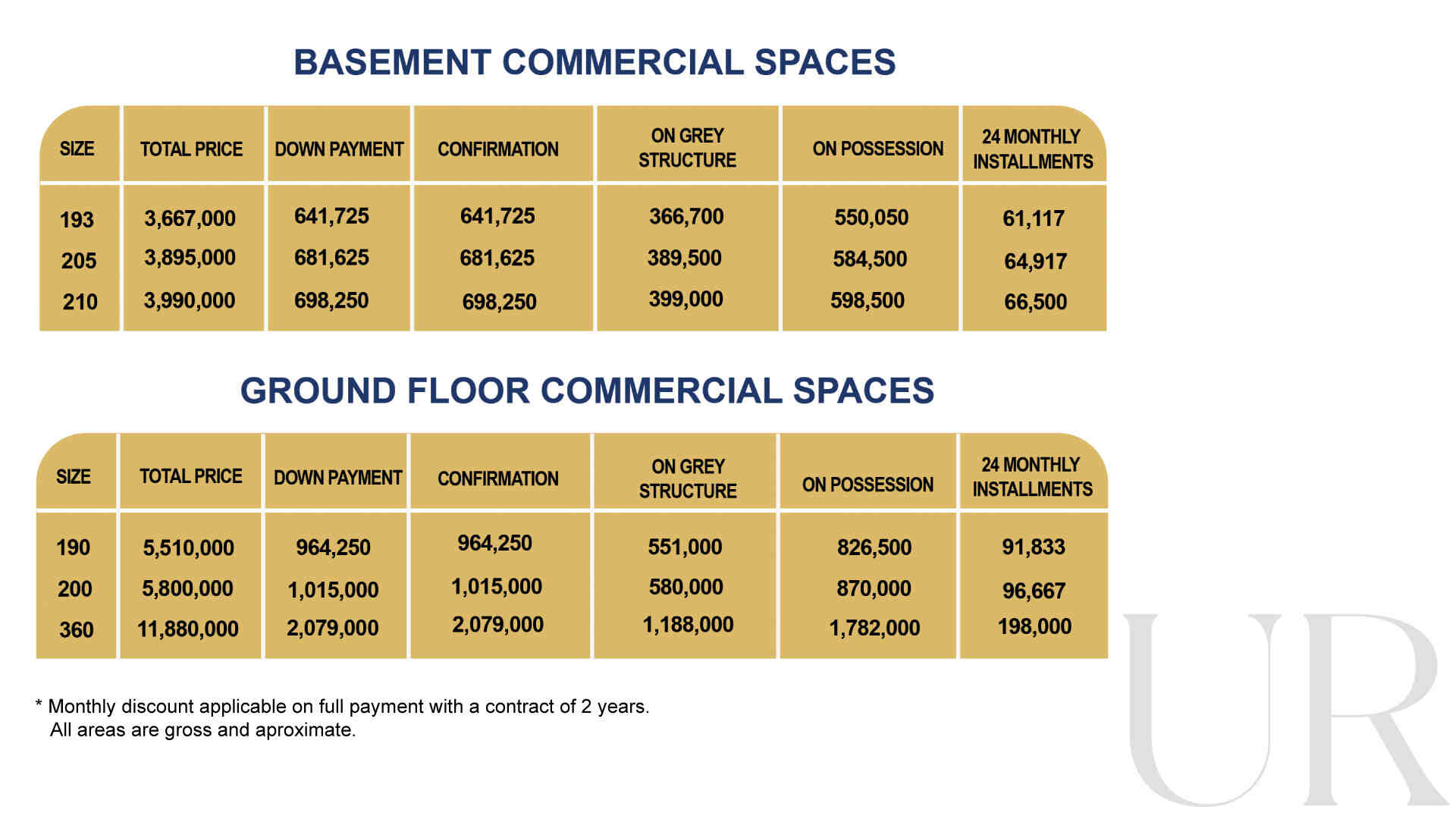 The ground floor and basement of Urban Heights offer state-of-the-art business activities opportunities for commercial investors. For now, the pre-launch prices are being offered.
